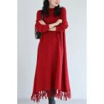 春ニット ワンピース ミディアム ロング 長袖 フレア袖 シンプル 【awp211-387】【即納:1-5営業日】【送料無料】宅込
