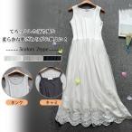 インナーペチワンピース 花柄 刺繍 レース キャミソールワンピース 膝丈 ミモレ丈 ノースリーブ ペチコート スリップ ドッキングワンピース インナー ミディアム キャミソール 春 夏 秋 重ね着 通勤 春 着痩せ 上品 レイヤード ホワイト 白 ベージュ 大人可愛い 森ガール