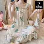 ルームウエア ワンピース レディース ノースリーブ キャミソールワンピース 膝丈 ミディアム丈 ミディ丈 フレア ギャザー フリル 袖なし キャミワン