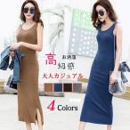 ワンピース ノースリーブ ロング丈 きれいめ ゆったり 無地 シンプル サマー ドレス インナーキャミソール ミニ ミディアム ロングキャミソール 夏