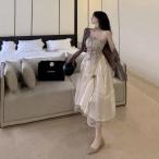 セット商品 チューブトップワンピース ミディアムワンピース ワンピース レディース クラシカルワンピース ミモレ丈 ドレス 肩見せ ウエストシェイプ ひざ下丈 大人可愛い きれいめ 上品 レトロ キュート ガーリー 個性的 送料無料