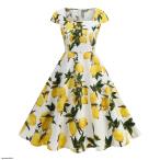 レディース ワンピース ノースリーブ 膝丈 ミディ丈 ミディアム丈 ボートネック 背中ファスナー ウエスト絞り フレアスカート 春 レモン