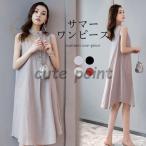 ワンピース ノースリーブ レディース Aラインワンピース 体型カバー 夏 膝丈ワンピース 袖無し 薄手 快適 ミディアム丈ワンピース オフィス