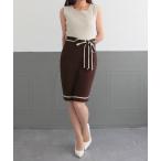 ワンピース ミディアム丈パイピングリボンノースリーブニットワンピース/22024