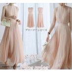 ワンピース ロング 夏 ノースリーブ プリーツ Aライン おしゃれ レディース ハイウエスト 着痩せ デート OL 二次会 ドレス