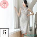 総レースワンピース パーティードレス タイト ワンピース ノースリーブ シースルー ミディアム丈 大きいサイズ 謝恩会 発表会 お呼ばれ