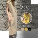 ワンピース フード パーカー ワンピース ノースリーブ 夏 春 秋 カジュアル ワンピース ミディアム フード付き ロング ビッグシルエット 大きいサイズ 無袖