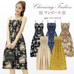 ワンピース 夏 花柄 ウエストカーブ切り替えの花図鑑ミディアムワンピース ワンピース ノースリーブ ワンピース 夏 花柄 レディース ロングワンピース