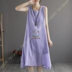 綿麻ワンピース サロペット ワンピース 綿麻 サロペットワンピース 膝下丈 ミディアム丈 大きサイズ ノースリーブ 体型カバー コットンリネン ナチュラル 可愛い ゆったり 春夏