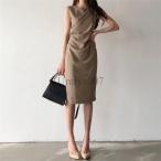 ワンピース レディース 秋 冬 秋冬 黒 ノースリーブ ミディアムワンピース ひざ丈 きれいめ タイトワンピ 無地 上品 オフィス カジュアル ブラック ベージュ 大人 20代 30代 40代 OL【HOT KEY...