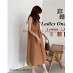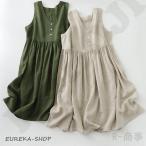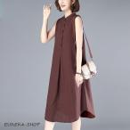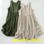 リネンワンピースレディース綿麻リネン混麻生地ジャンパースカート綿麻ワンピースミディアムワンピース膝丈ワンピースノースリーブ夏新作
