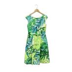 レディース ワンピース ノースリーブ 膝丈 ミディ丈 ミディアム丈 ボートネック 背中ファスナー ウエスト絞り Aライン フレアスカート 春 花柄 フ