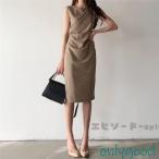 ノースリーブ ニットワンピース 美ライン カットソー ロングワンピース タイトワンピース ミモレ丈 ミディアム シンプル 無地 体型カバー 着痩せ おしゃれ セー