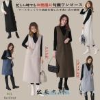 【最安2774円!5%OFF+P2!4月30まで】ジャンパースカート ワンピース レディース ワンピ ミモレ ミモレ丈 ミモレワンピース ゆったり 無地 ベーシック 厚手 ポケット付き ストレート レイヤード 重ね着 体型カバー 秋 冬 春 暖かい 日常 秋冬 きれいめ ノースリーブ ロング