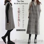 ジャンパースカート レディース 秋冬 ワンピース ジャンスカ 膝丈 ロング丈 チェック柄 Vネック サロペットスカート ノースリーブ レイヤード 重ね着 ルームウ