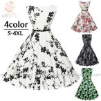 レディース ワンピース ノースリーブ 膝丈 ミディ丈 ミディアム丈 ボートネック 背中ファスナー ウエスト絞り Aライン フレアスカート 春 花柄 フ
