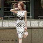 夏新作 ノースリーブタイトワンピース水玉柄 膝丈 スリット OL 二次会 結婚式 お嬢様 大人 ミディアム エレガント パーティー ドレス