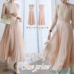 ワンピース ロング 夏 ノースリーブ プリーツ Aライン おしゃれ レディース ハイウエスト 着痩せ デート OL 二次会 ドレス