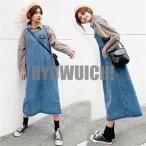 デニムワンピース デニムサロペット レディース ワンピース ノースリーブ デニム ミディアムワンピース ロング丈 マキシ丈 体型カバー 春新作