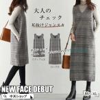 【先着50枚!13%OFFクーポン】ワンピース 秋 冬 ジャンパースカート vネック ロングワンピース ノースリーブ レイヤード ジャンスカ オールインワン サロペット ワンピ チェック 秋冬 ひざ丈 膝下 きれいめ 大きいサイズ ゆったり 可愛い ロング丈 ミディアム丈