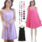 2枚セット!ワンピース 体型カバー 夏用 無地ワンピース ノースリーブワンピース 夏用ワンピース Aライン ワンピ ミディアム丈 ルームウエア 部屋着