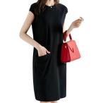 ノースリーブ ワンピース 膝丈 ポケット 体型 カバー 着痩せ レディース フレンチ ミディアム(ブラック, L)