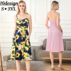 ワンピース キャミワンピ ノースリーブ キャミソールワンピース 膝丈 ミディアム丈 レディース フロントボタン 春夏 花柄 無地 フラワー かわいい