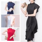 パーティードレス ワンピース アシンメトリー フリル ハイネック ノースリーブ タイトドレス ミディアムドレス 二次会 フォーマル カクテルドレス 女子会 赤