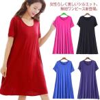 送料無料5色展開 ワンピース 膝丈丈 レディース ラウンドネック 半袖 モダール 体型カバー ゆったり 夏服 ミディアム丈 通気性 清涼感 部屋着