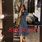 デニムワンピース レディース ミディアム丈 春夏 半袖ワンピース シャツワンピース ゆったり ユーズド 韓国風 通勤 お出かけ ミモレワンピース