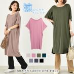 ワンピース レディース 秋 冬 秋冬 黒 ミディアムワンピ 半袖 ドルマン Tシャツ 体型カバー ブラック ピンク グレー ベージュ カーキ グリーン 送料無料