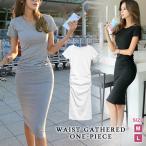 ワンピース レディース 半袖 ひざ丈 ミディアム丈 ギャザー 無地 タイト セクシー 春 夏 シンプル 綿 コットン カジュア グレー ブラック 黒 JOCOSA 8812