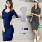 ワンピース レディース タイトワンピース ミディアム 秋 冬 秋冬 5分袖 半袖 UVカット ミディアム丈 タイトワンピ 大人 20代 30代 40代 OL ママ 母 送料無料