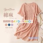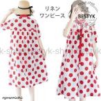リネンワンピース レディース 綿麻ワンピース リネン混 麻生地 綿麻 リメイク風 半袖 シャツワンピース ミディアムワンピース ミモレ丈 ドット柄