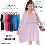 大きいサイズ レディース ワンピース パジャマワンピース ミディアムワンピース 膝丈ワンピース 半袖 薄手 ラウンドネック パジャマ 春夏 春新作