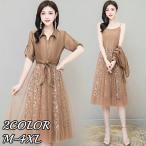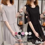 シフォンワンピース 半袖ワンピース ミディアムワンピース レディース オフショルダー ラウンドネック 2022夏新作 パーティー 通勤 結婚式