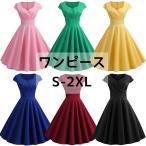 ワンピース 半袖 膝丈 Vネック ミディアム丈 ミディ丈 レディース パーティードレス Aライン キャップスリーブ フレアスカート サイドファスナー