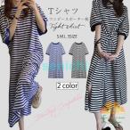 Tシャツワンピース Tシャツ ボーター柄 半袖 モダール ロング丈 ミニ丈 ワンピ カジュアル ゆったり ルームウェア パジャマ 体型カバー ミディアム 春夏 普段着