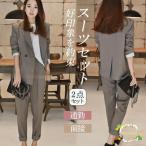 スーツセット レディース ビジネススーツ パンツセット 事務服 2点セット 着痩せ フォーマル オフィス 春秋新作 大人かわいい きれいめ