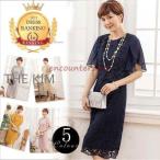 パーティードレス 結婚式 ドレス 20代 30代 40代 50代 親族 フォーマルドレス ロング フレア 3点セット レース パール ネックレス付き 半袖 2L 3L 大きいサイズ