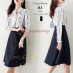 シャツワンピース ミディアム 長袖 大きいサイズ マタニティ ワンピース ミディ丈 ミモレ丈 ストライプ ゆったり 体型カバー カジュアル 韓国 春 秋