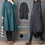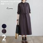 シャツワンピース レディース 春秋 膝丈 長袖 ゆったり ミディアム丈 ワンピース 無地 大きいサイズ 体型カバー 森ガール 優雅 上品 着やせ 50代 40代 30代