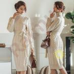 ニットワンピース レディース 40代 秋冬 長袖ワンピース ハイネックセーターミディアム丈 タイトスカート膝丈ニットワンピ オシャレ 韓国風 大人 上品 新作