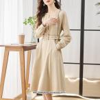 春 夏 長袖ワンピース ゆったり レディース ワンピース ミディアム フリル シャツワンピ 女性 ひざ丈ワンピース 長袖 レトロ 姫系