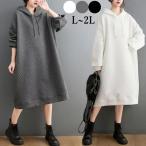 パーカー キルティング ワンピース スウェット パーカーワンピース カジュアル ミディアム フード付き ロング ビッグシルエット 大きいサイズ 長袖 ゆっ