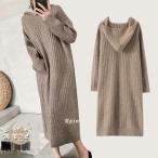 ワンピース レディース ニットワンピース 秋 冬 ロングワンピース 体型カバー リブニット マキシワンピース 長袖 フード付 ニットワンピ ミディアム丈