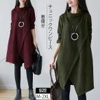 チュニック ワンピース レディース 長袖 トップス ミディアム丈 レディースチュニック Vネック 綿混ポンチ素材 レディーストップス シンプル おしゃれ