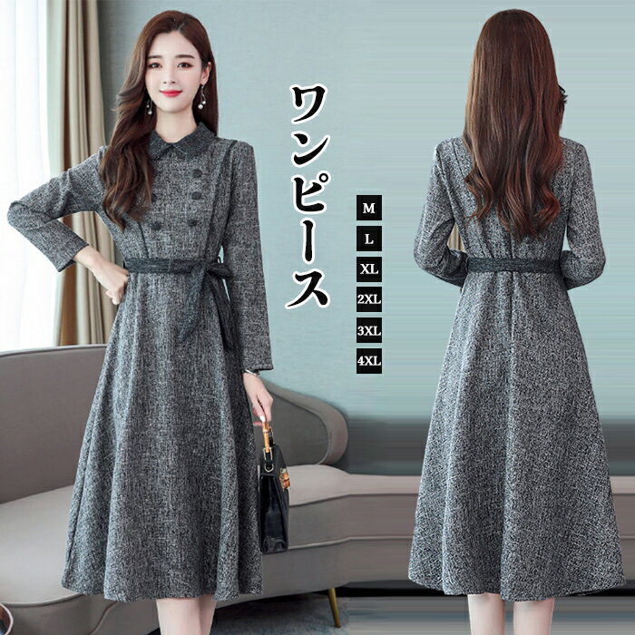 ワンピース 長袖 Aライン 秋冬 きれいめ ミディアム丈 膝丈 ミモレ丈 レディース 30代40代 着痩せ フェミニン フォーマル ベルト付き ワンピ 大きいサイズ 大人 通勤 結婚式 OL オシャレ 上品 日常 おしゃれ 大人可愛い 送料無料 50代 春秋 2L 3L 4L 5L