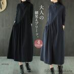 ワンピース 秋 冬 春 きれいめ 大人 上品 長袖 30代 40代 50代 カジュアル ナチュラル服 ゆったり シンプル スモック エスニック 大人可愛い 膝丈 ミディアム ナ