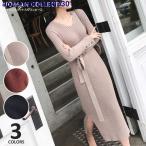 ワンピース リブ ミモレ丈 ミディアム 秋冬 長袖 スリット タイト 細め 可愛い レディース ゆうパケット